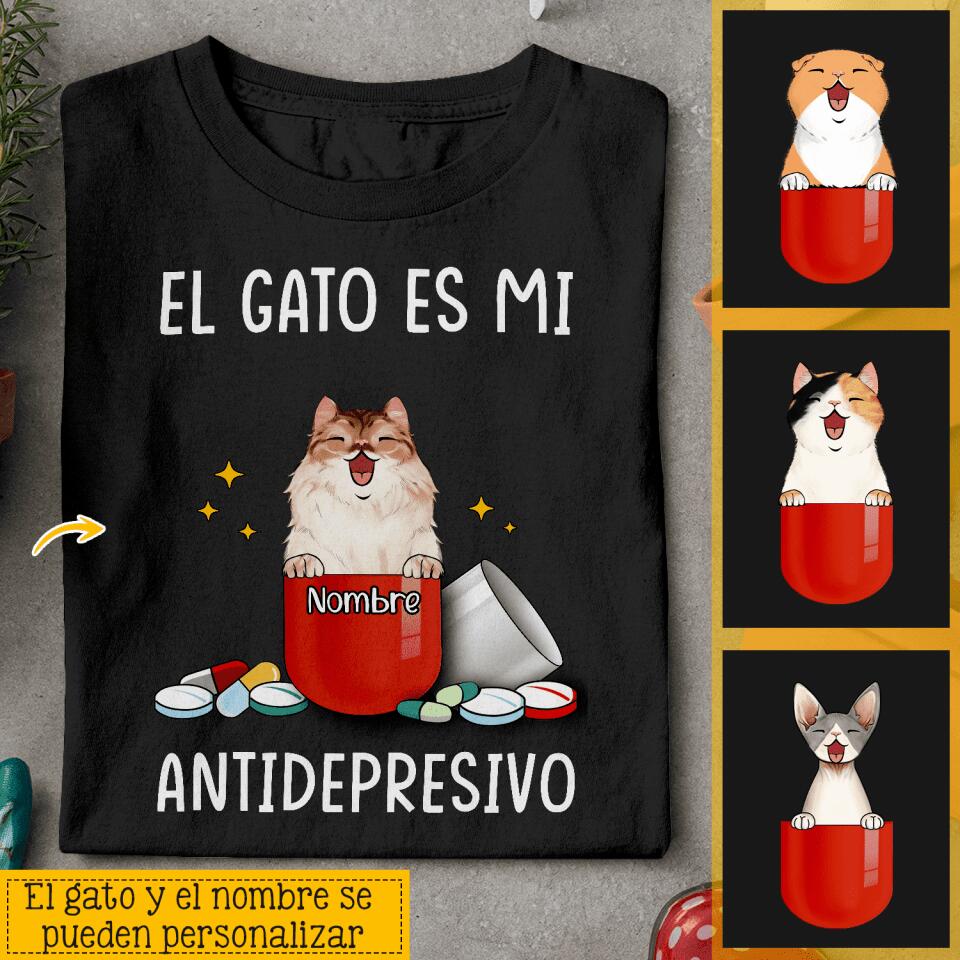 El gato es mi antidepresivo, Personalizable Camiseta unisex para los amantes de los gatos