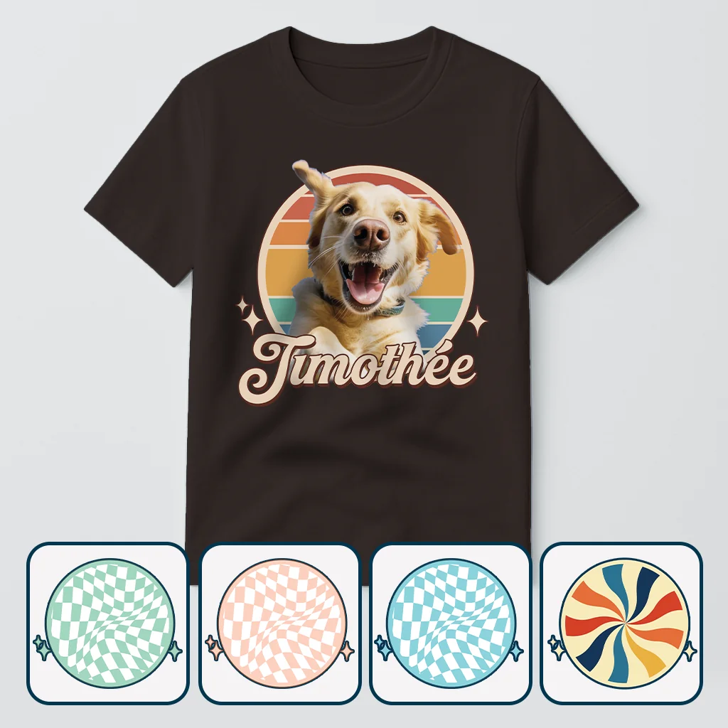 Camiseta retro con foto personalizada, nombre de perro y gato