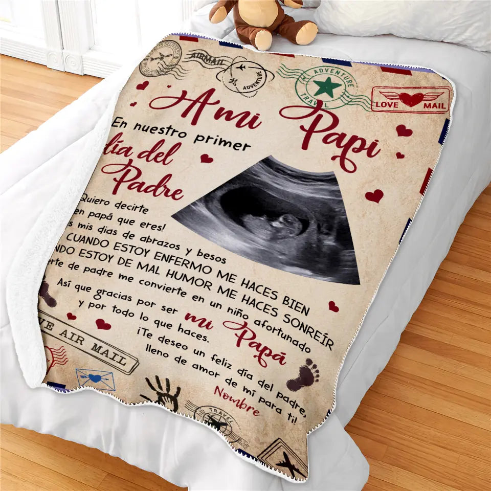 Personalizar Mantas Polar Para Papá | Personalizado Regalo Para Padre | A mi papi En nuestro primer