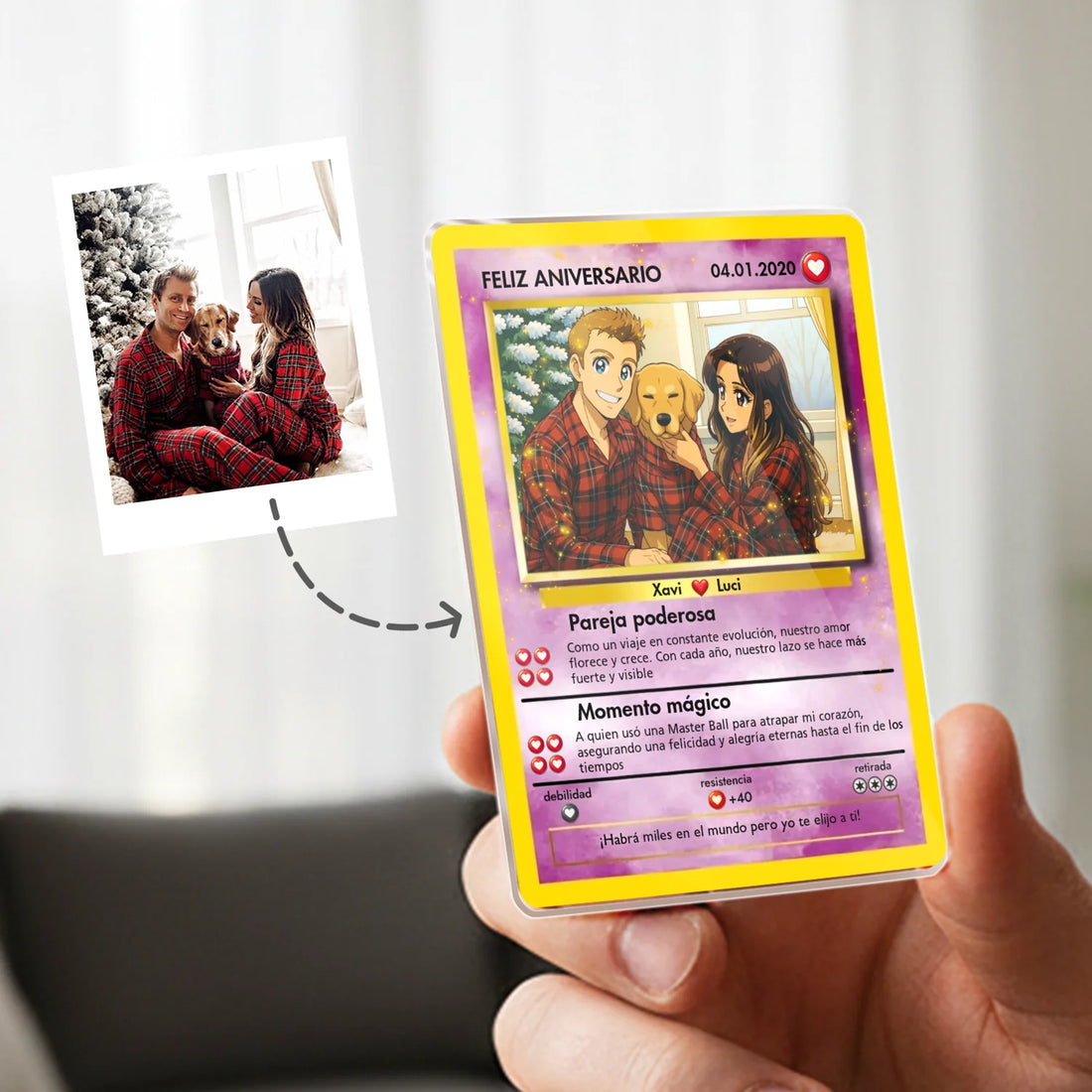 Carta personalizada para Pareja - Estilo anime Carta Poke coleccionable