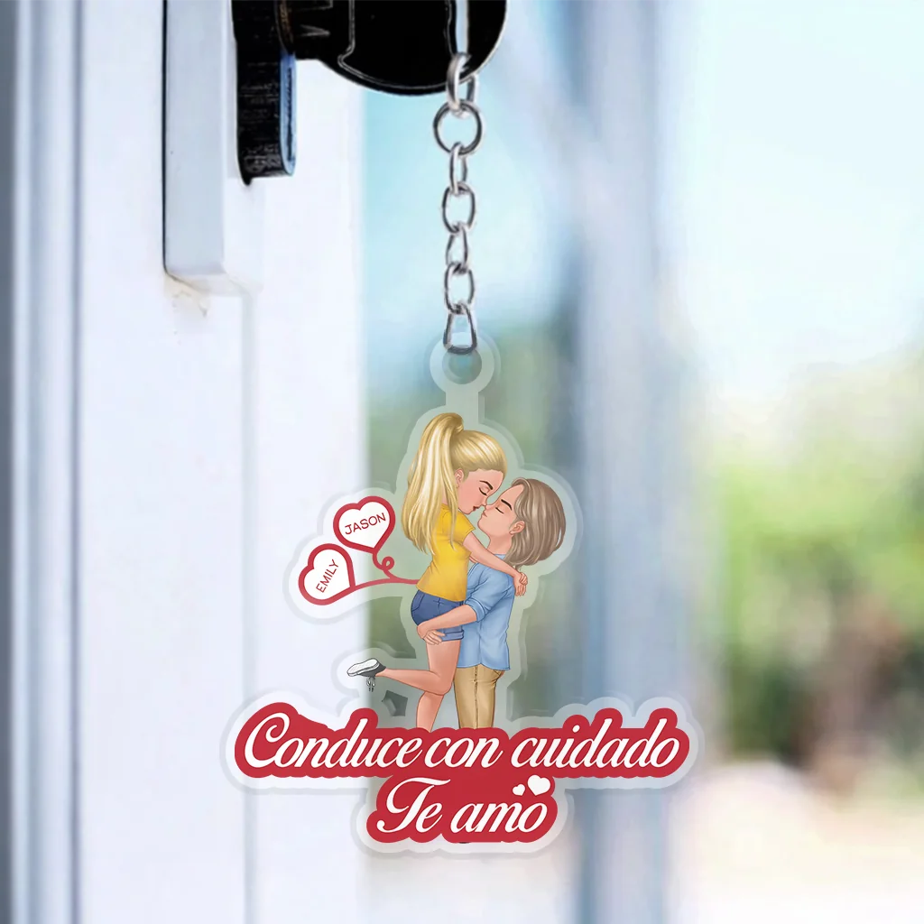 Llavero Acrílico para Parejas - Conduce con cuidado Te amo - llaveros personalizados