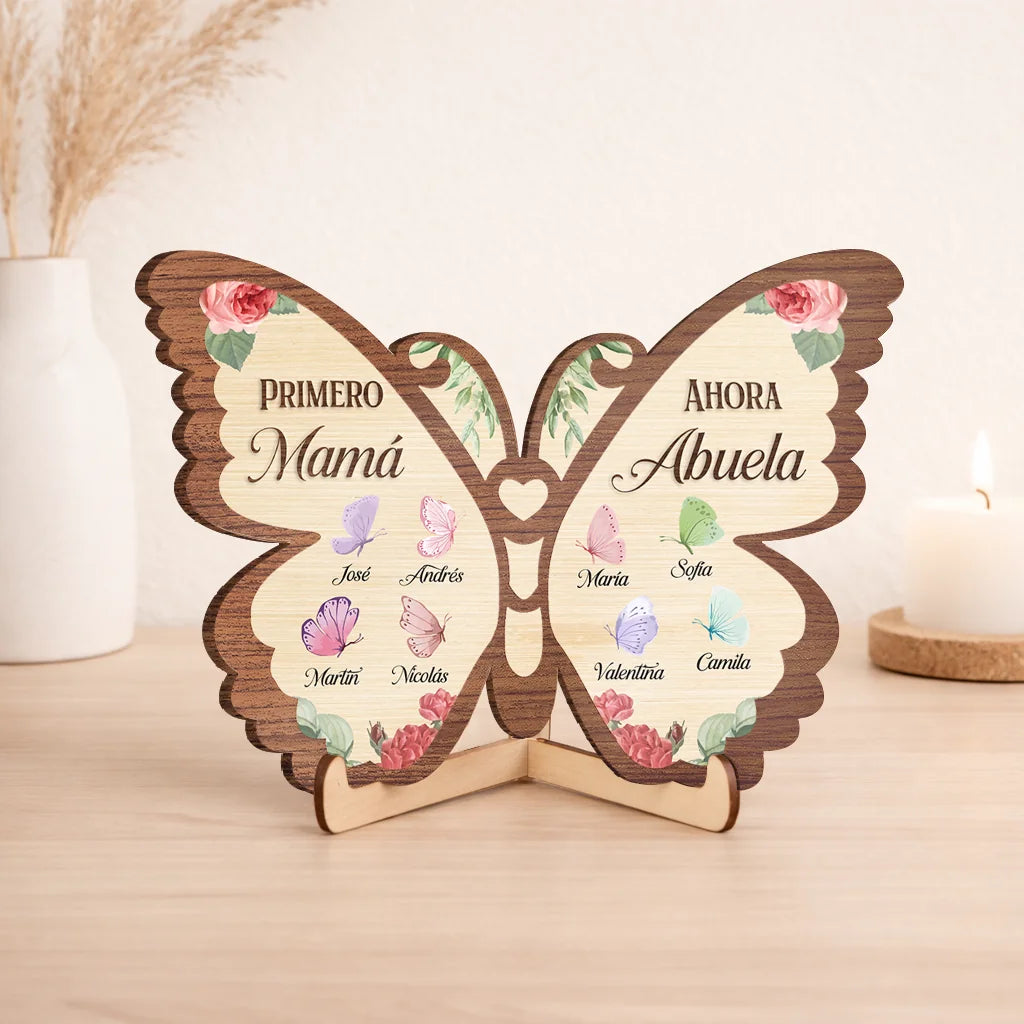 Placa de madera mariposa - Regalo personalizado para Abuela - Primero Mamá, Ahora Abuela