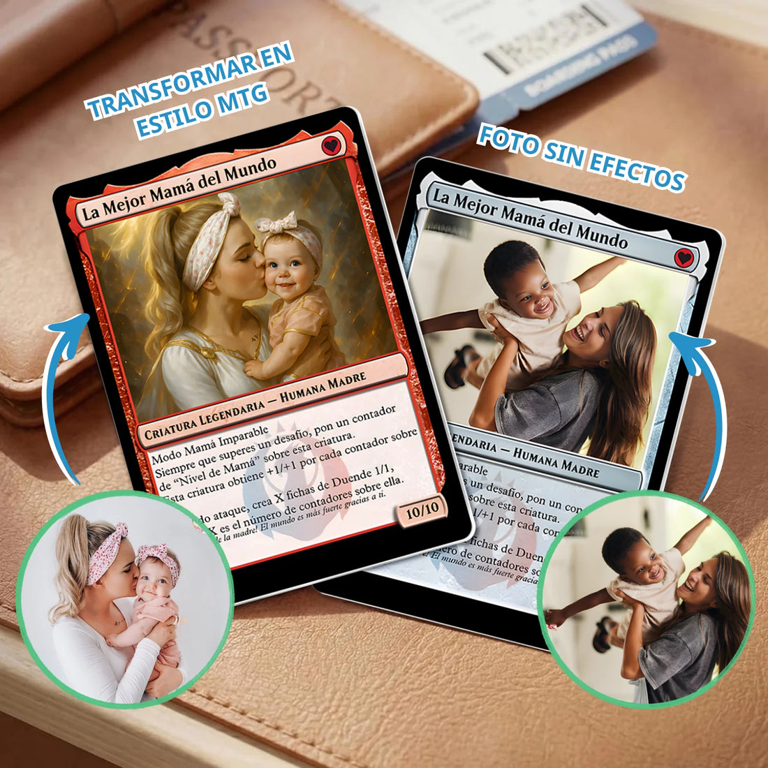 Carta personalizada para Mamá – Transformamos tu foto en estilo carta mágica legendaria