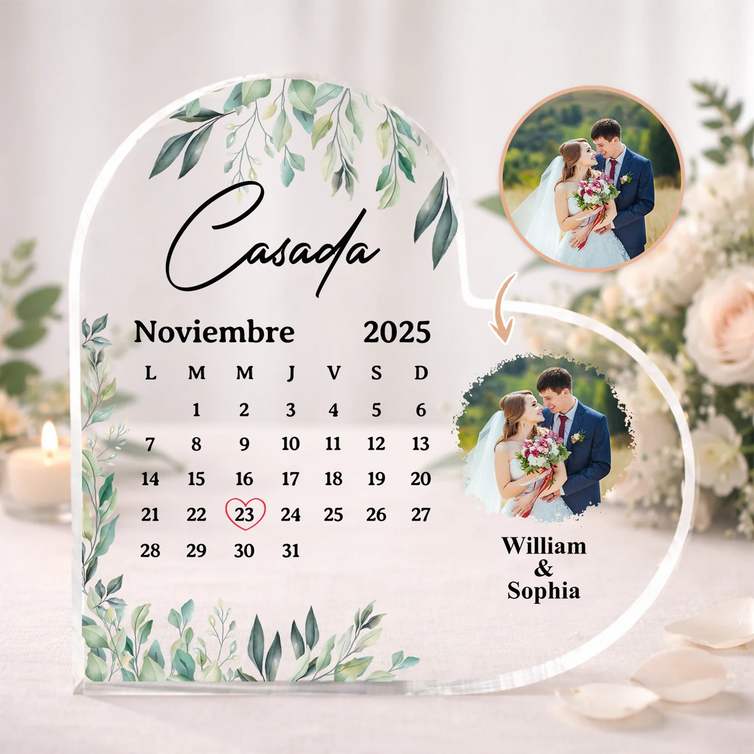 Cristal plaque personalizada - Calendario fotográfico personalizado para parejas casadas