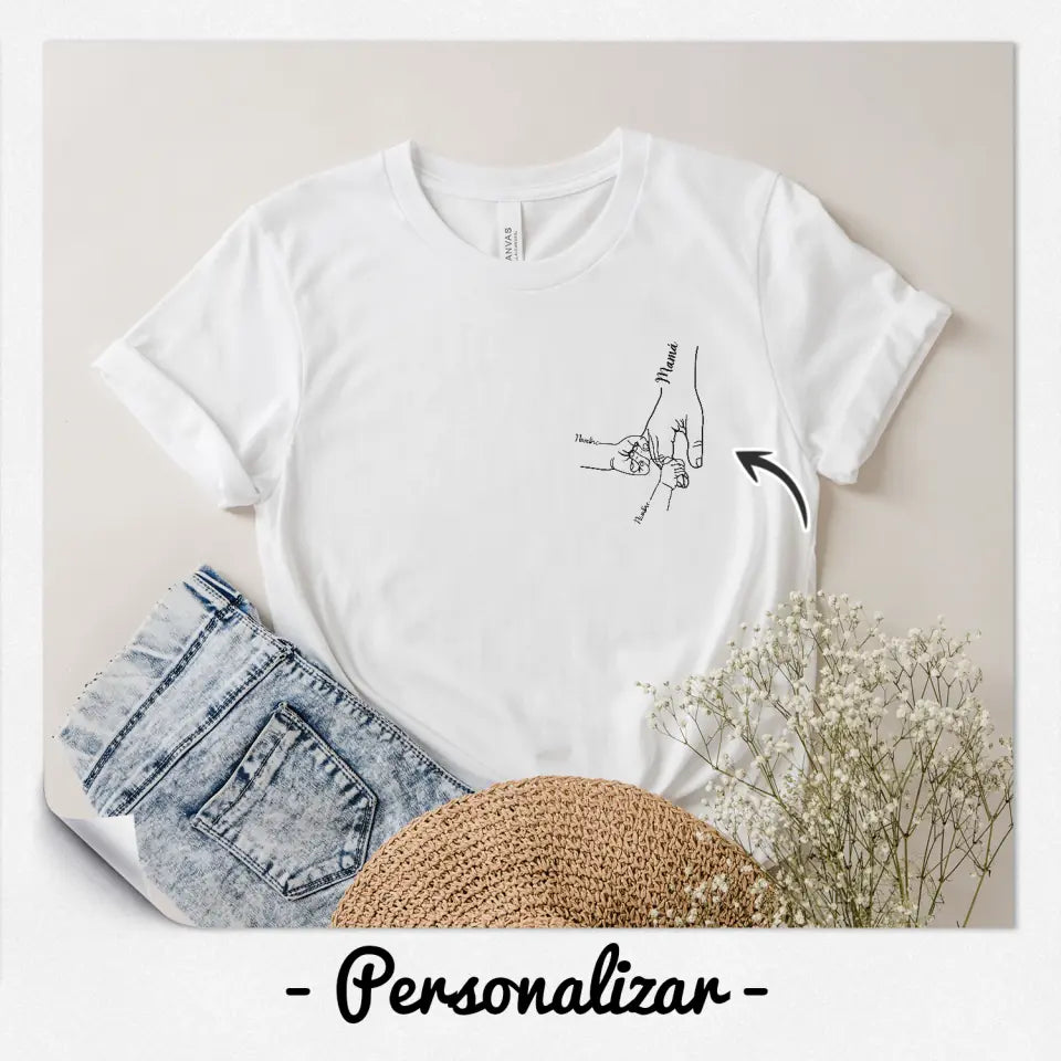 Personalizar Camisetas Para Mamá | Personalizado Regalos Para Madre | Manos niños mamá impreso en el lado izquierdo del pecho