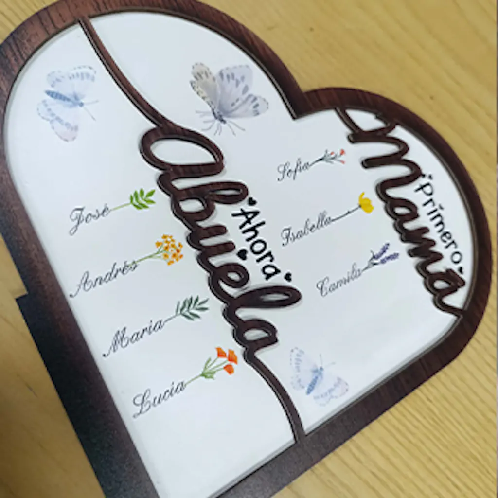 Esta elegante placa de madera personalizada simboliza el crecimiento de la familia y el cariño que se multiplica con cada nueva generación.