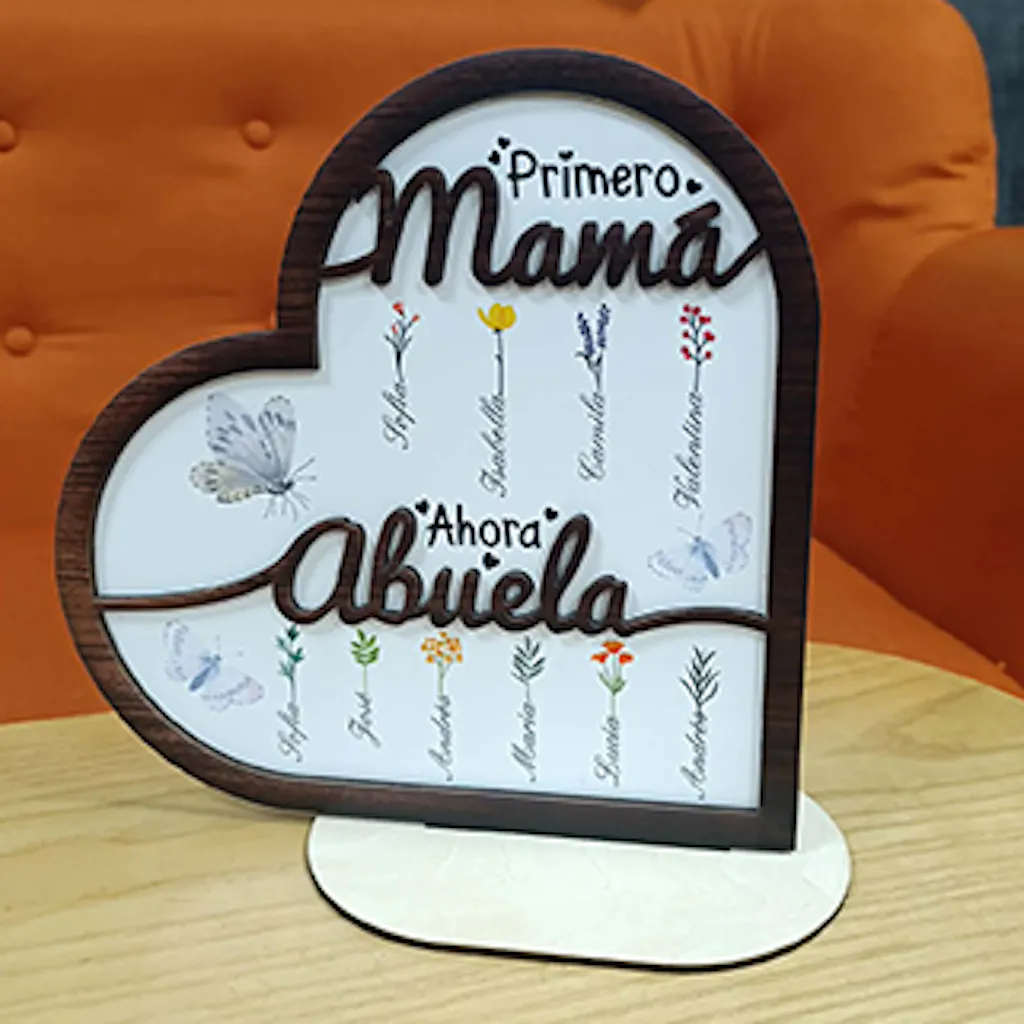 Placa de madera personalizada en forma de corazón – Primero Mamá, Ahora Abuela - Regalo para Abuela