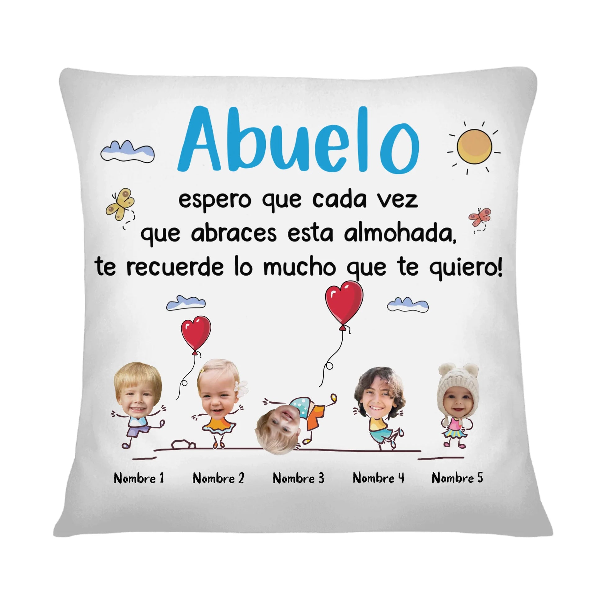 Celebra el amor incondicional de tu abuelo con estos Cojines Personalizados Foto Para Abuelo. Un regalo tierno y personal que le recordará cada día lo especial que es. Imagina su sonrisa al ver las fotos de sus nietos plasmadas en este suave y reconfortante cojín.